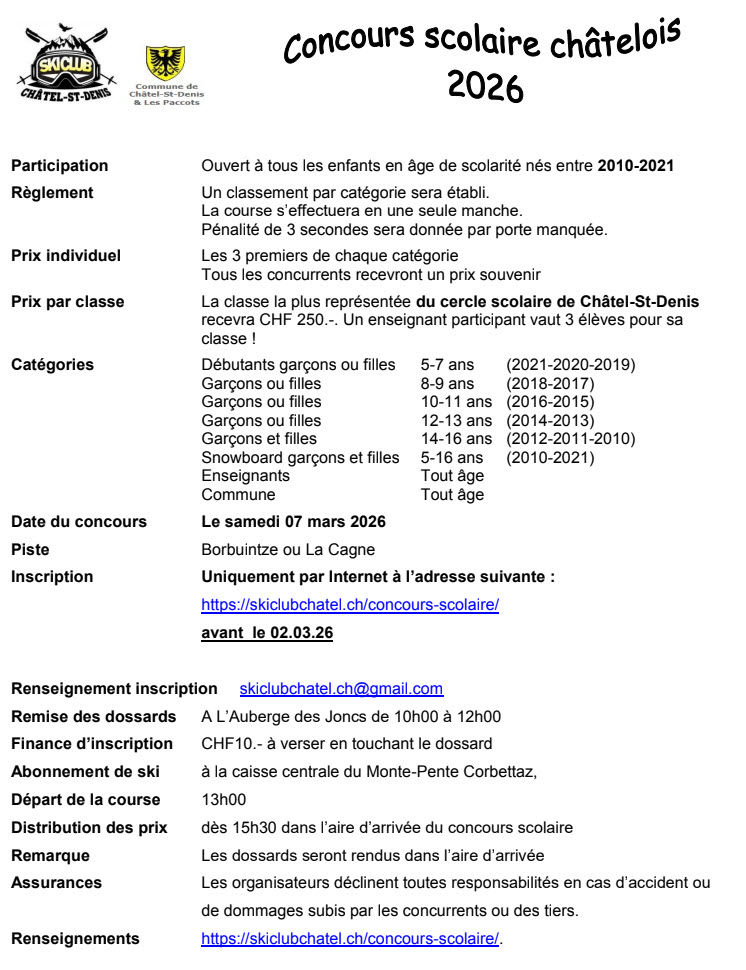 A vos agendas! Le concours scolaire 2026 est agendé pour le samedi 7 mars