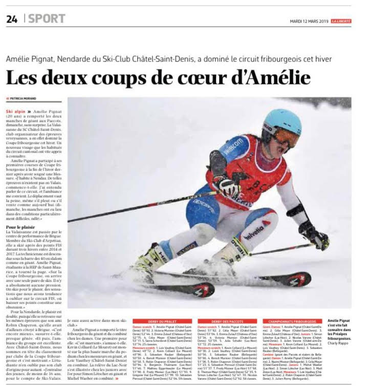Bravo à Amélie, la plus Châteloise des Valaisannes pour ce bel article paru dans La Liberté du 12 mars 2019.