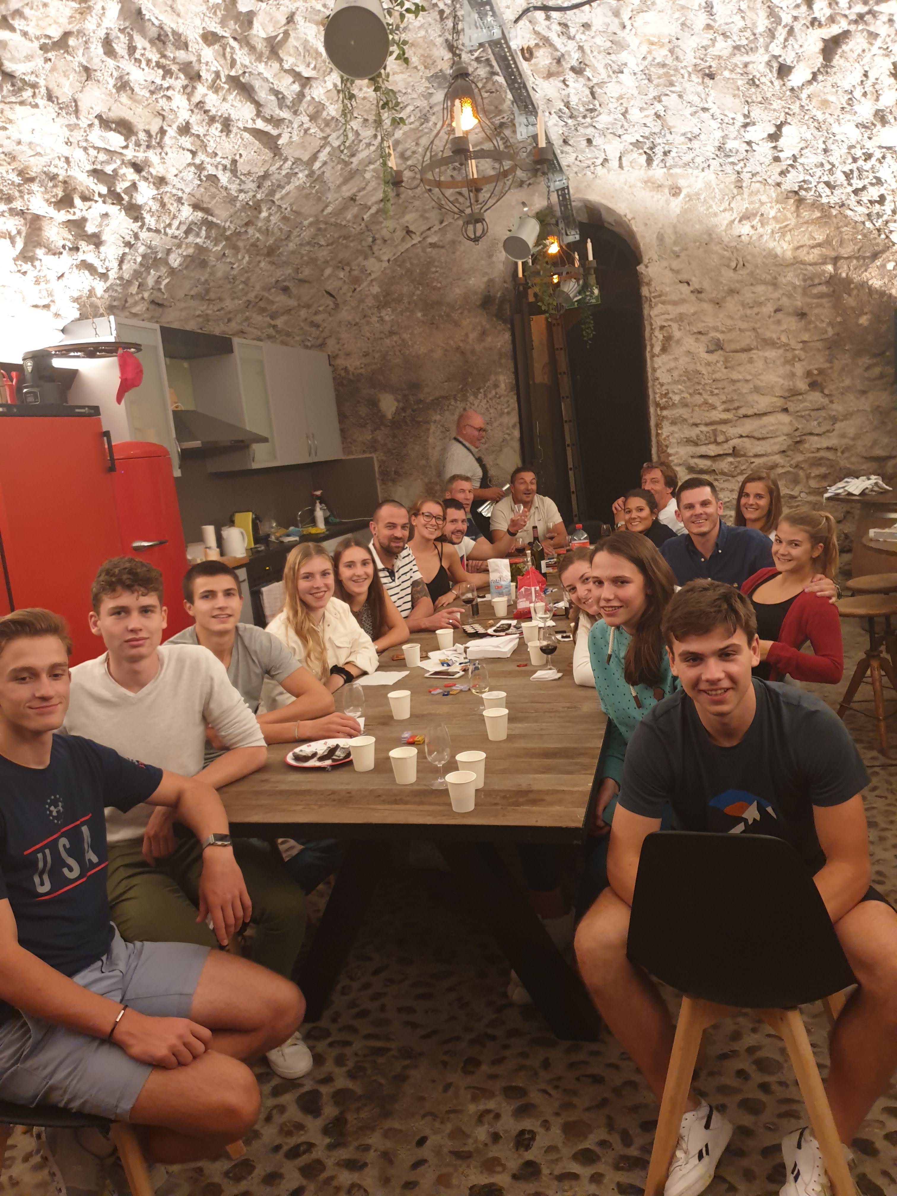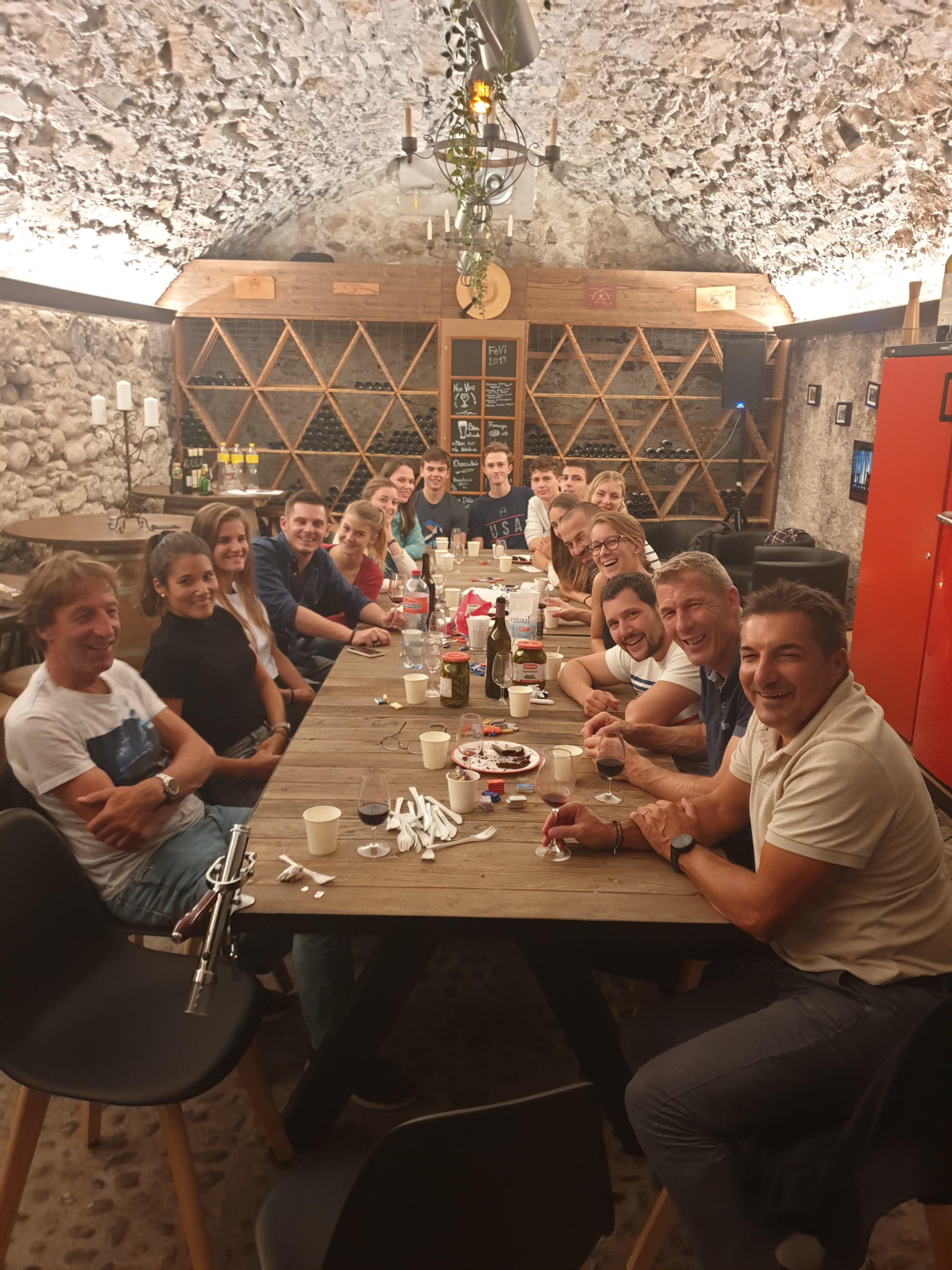Hier, vendredi 13 septembre, nos Aigles se sont réunis dans le Caveau FeVi La Voûte à Vevey pour ‘dégommer’ leur meule fièrement gagnée lors de l’Inter-club 2019 de la Coupe Fribourgeoise de Ski-Alpin! Une belle soirée pour notre groupe Juniors/Seniors qui est déjà motivé à récidiver pour la saison 2020. Nos anciens, moins anciens et nouveaux skieurs du Groupe sont d’ores et déjà motivés à ramener un troisième titre consécutif à leur Ski-Club et une meule en terre Châteloise! Réponse en fin de saison prochaine lors de la remise à la maison! Mais d’ici là, bon début de préparation physique à tous et bon début sur les skis dans quelques semaines à Zermatt!